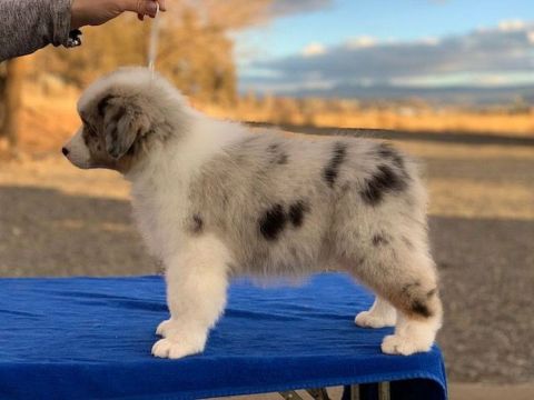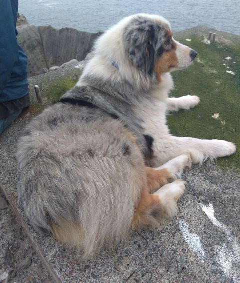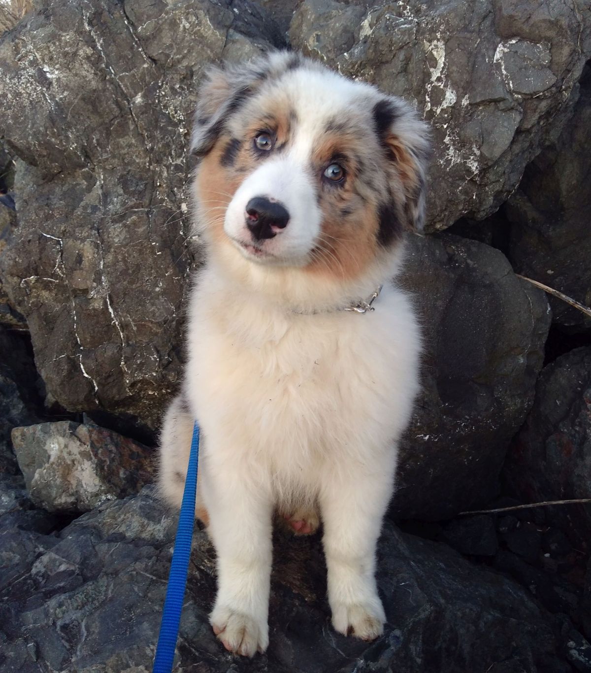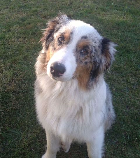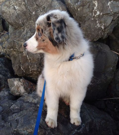 Sky is beautiful, sweet natured, calm, loving and well put together. She works well for food, with basic obedience training, and off to a good start in agility. She loves people and wants to please, but is not excessively needy. Sky has average intelligence and drive, and is very pleasant to be around. I adore her, but I think she would get into a car with anyone.